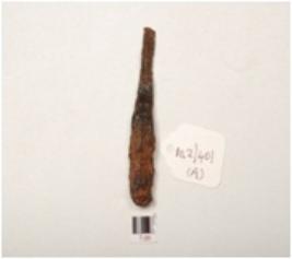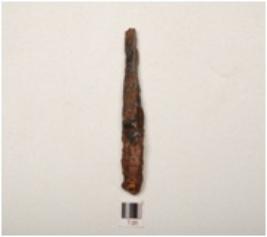 | Description / विवरण | A nail made of iron, flat broad at one end, broken at other end, rusted and chemically treated surface, rectangular in section. |