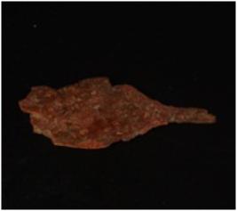 | Description / विवरण | Fragment of a copper arrow head, flat surface on both sides, broken along one end. |