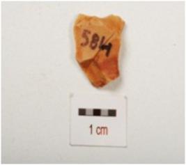 | Description / विवरण | Flake of chert stone with flake scars on surface. |