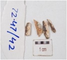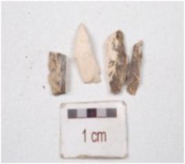 | Description / विवरण | Fragment of blade on chert, broken in four pieces. |