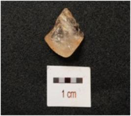 | Description / विवरण | Flake of quartz stone with flake scars on surface. |