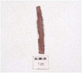 | Description / विवरण | Chert blade, trapezoidal cross-section and use-wear marks along the cutting edge. |