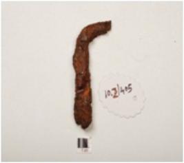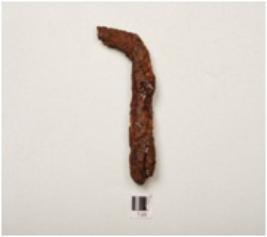 | Description / विवरण | A nail made of iron, elongeted body, flat broad at one end, pointed at other end, rusted surface with chemically treated, slightly bend on surface, rectangular in section. |