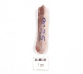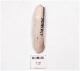| Description / विवरण | Blade made on chert, triangular cross-section and prominent bulb. |