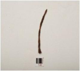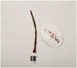 | Description / विवरण | A nail made of iron elongeted body, broad one end, pointed other end, chemically treated surface, slightly bend, circular in section. |