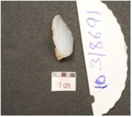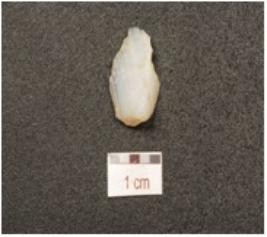 | Description / विवरण | A flake made of chalcedony, prepared platform on proximal end, flake scars on dorsal side and triangular cross section. |