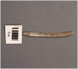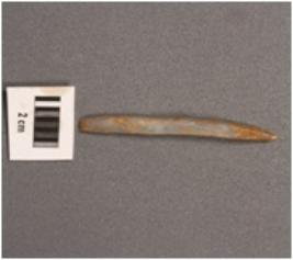 | Description / विवरण | Chalcedony parallel sided blade with a single mid ridge, triangular section, pointed distal end. |