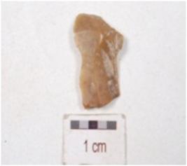 | Description / विवरण | Chert blade, triangular cross-section, broken from one end and use wear marks along the cutting edge. |