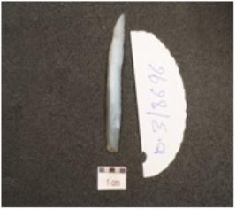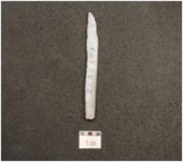 | Description / विवरण | A blade made of chalcedony, prepared platform on proximal end, double ridge on dorsal and use wear marks on working edges. |