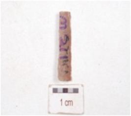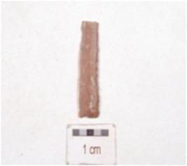 | Description / विवरण | Chert blade, triangular cross-section and use-wear marks along the cutting edge. |