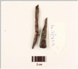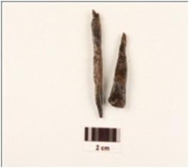 | Description / विवरण | Fragment of iron nail broken into three pieces, chemically treated, broad at one end other end pointed, square in section. |