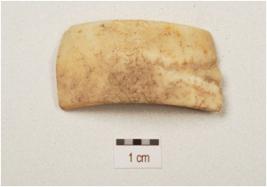 | Description / विवरण | Flake of chert stone with flake scars on surface, |