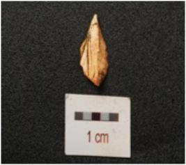 | Description / विवरण | Flake of chert stone with flake scars on surface, |