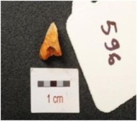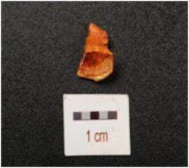 | Description / विवरण | Flake of chert stone with flake scars on surface. |