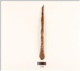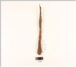 | Description / विवरण | Iron nail, flat surface, slightly curved, flat convex at one end, pointed other end, rectangular in section. |