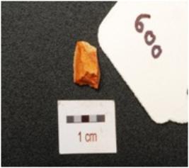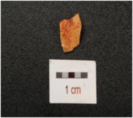 | Description / विवरण | Flake of chert stone with flake scars on surface. |