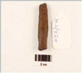 | Description / विवरण | Fragment of iron hoock square in section, chemically treated chipped off surface. |