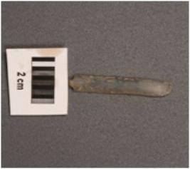 | Description / विवरण | Parallel sided microlithic blade with use-wear marks on cutting edges, a mid-ridge on dorsal surface, triangular in section a prominent bulb on proximal end. |