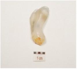 | Description / विवरण | A core made of chalcedony, prepared platfrom on and blade scars on both sides. |
