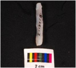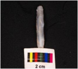 | Description / विवरण | Parallel sided blade, made on chalcedony stone, mid ridge on dorsal surface, ventral surface is smooth use wear marks on edge. |