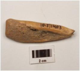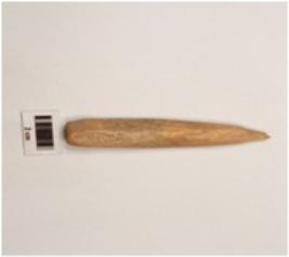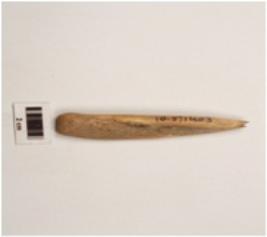 | Description / विवरण | A small bone point, modified and pointed ends, smooth surface and brown in colour, cracks are visible on surface. |
