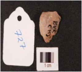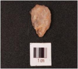 | Description / विवरण | A side scraper made on quartz flake with marks along the cutting edge. |