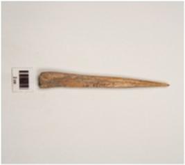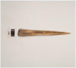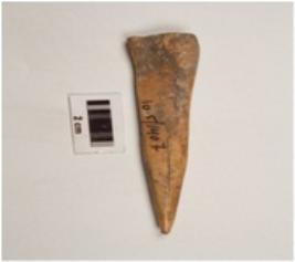 | Description / विवरण | A modified bone tool, with pointed ends, surface is smooth and brown in colour, grooved on hear part. |