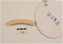| Description / विवरण | A quartz blade with a ridge on dorsal side, prepared platform, use-wear marks along the cutting edge and distal end broken. |