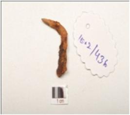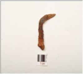 | Description / विवरण | Fragment of iron nail pointed one end and broken other end rusted condition, bent on middle portion. |