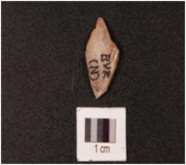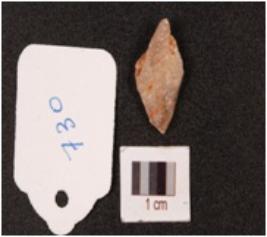 | Description / विवरण | A quartz flake with flake scars on the surface. |