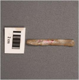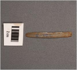 | Description / विवरण | Parallel sided microlithic blade with use-wear marks on cutting edges, two ridge on dorsal surface, prominent bulb on proximal end, broken distal end. |