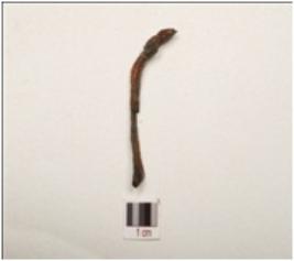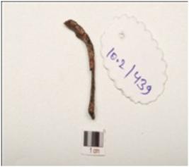 | Description / विवरण | Fragment of iron pin flat and rough surface, broken on both end, thin in character chemically treated surface. |