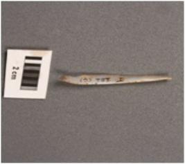 | Description / विवरण | Parallel sided microlithic blade with use-wear marks on cutting edges, prominent bulb on proximal end, a mid ridge on dorsal surface. |