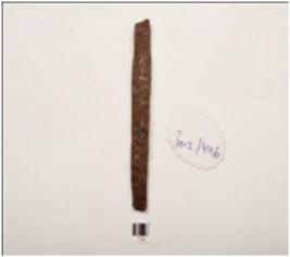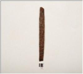 | Description / विवरण | Fragment of iron nail, broken on both ends, square section flat surface chemically treated surface. |