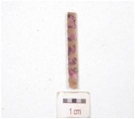 | Description / विवरण | Fragment of a backed blade, made on chert, broken along both the ends, backing on one latreral side, double ridge on dorsal side and use-wear marks along the cutting edge. |