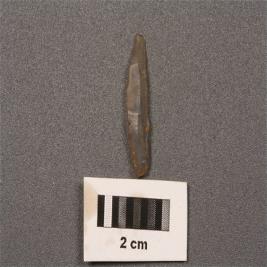 | Description / विवरण | A blunt point made on chalcedony blade, with sharp cutting edges, pointed distal end, prominent bulb on proximal end, ridges on doral surface. |