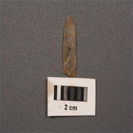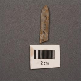 | Description / विवरण | Parallel sided blade, proximal end broken, use wear marks on both working edges, one verfical ridge on dorsal surface. |