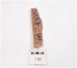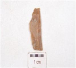 | Description / विवरण | Chert blade triangular cross-section, prepared platfrom, diffused bulb and use-wear marks along the cutting edge. |