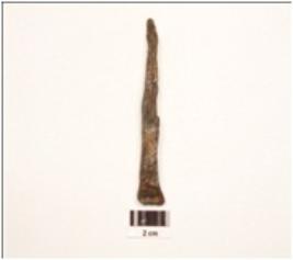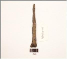 | Description / विवरण | Iron nail with broken head and sharp working end, chemically treated object, square in section. |