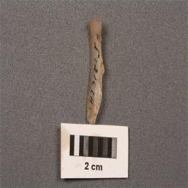 | Description / विवरण | Parallel sided microlithic blade with use wear marks on cotting edges, a prominent mid ridge on dorsal surface, a prominent bulb on proximal end. |