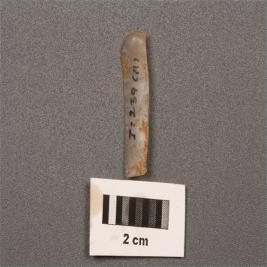 | Description / विवरण | Parallel chalcedony blade with mid ridge on dorsal side and diffused bulb on proximal end. Use wear marks on both edges. |