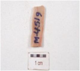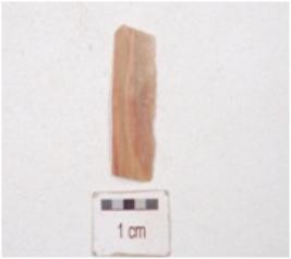 | Description / विवरण | A chert blade, triangular cross-section, broken from both ends and use wear marks along the cutting edges. |
