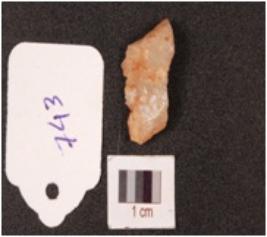 | Description / विवरण | A quartz flake with flake scars and partly intact cortex. |