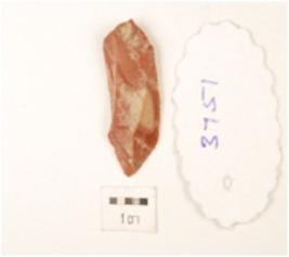 | Description / विवरण | A utilized flake made by chert, flake scars on the surface, prepared platform on the proximal end, distal end pointed, partly retouching on the cutting edges. |