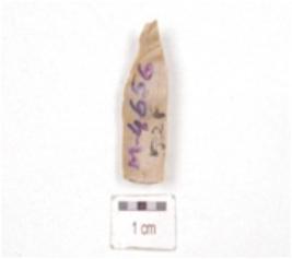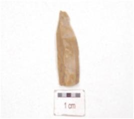 | Description / विवरण | A chert blade, trapezoidal cross-section, prepared platform and use-wear marks along one cutting edge. |