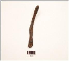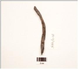 | Description / विवरण | Fragment of iron nail with broken head and other end is flat and sharp, chemically treated object, rectangular in section. |