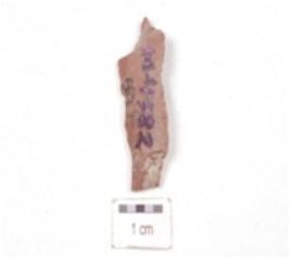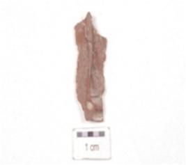 | Description / विवरण | A chert blade, triangular cross-section, broken from both ends and use-wear marks along the cutting edges. |