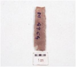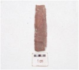 | Description / विवरण | Fragment of a parallel sided blade, made on chert, broken along both the ends, blade scars on dorsal side and use-wear marks along cutting edges. |