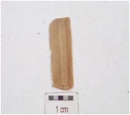 | Description / विवरण | Fragment of a parallel sided blade, made on chert, broken along proximal end, double ridge on dorsal side and use-wear marks on working edges. |