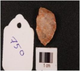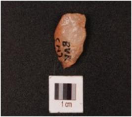 | Description / विवरण | A quartz flake with flake scars and partly intact cortex. |